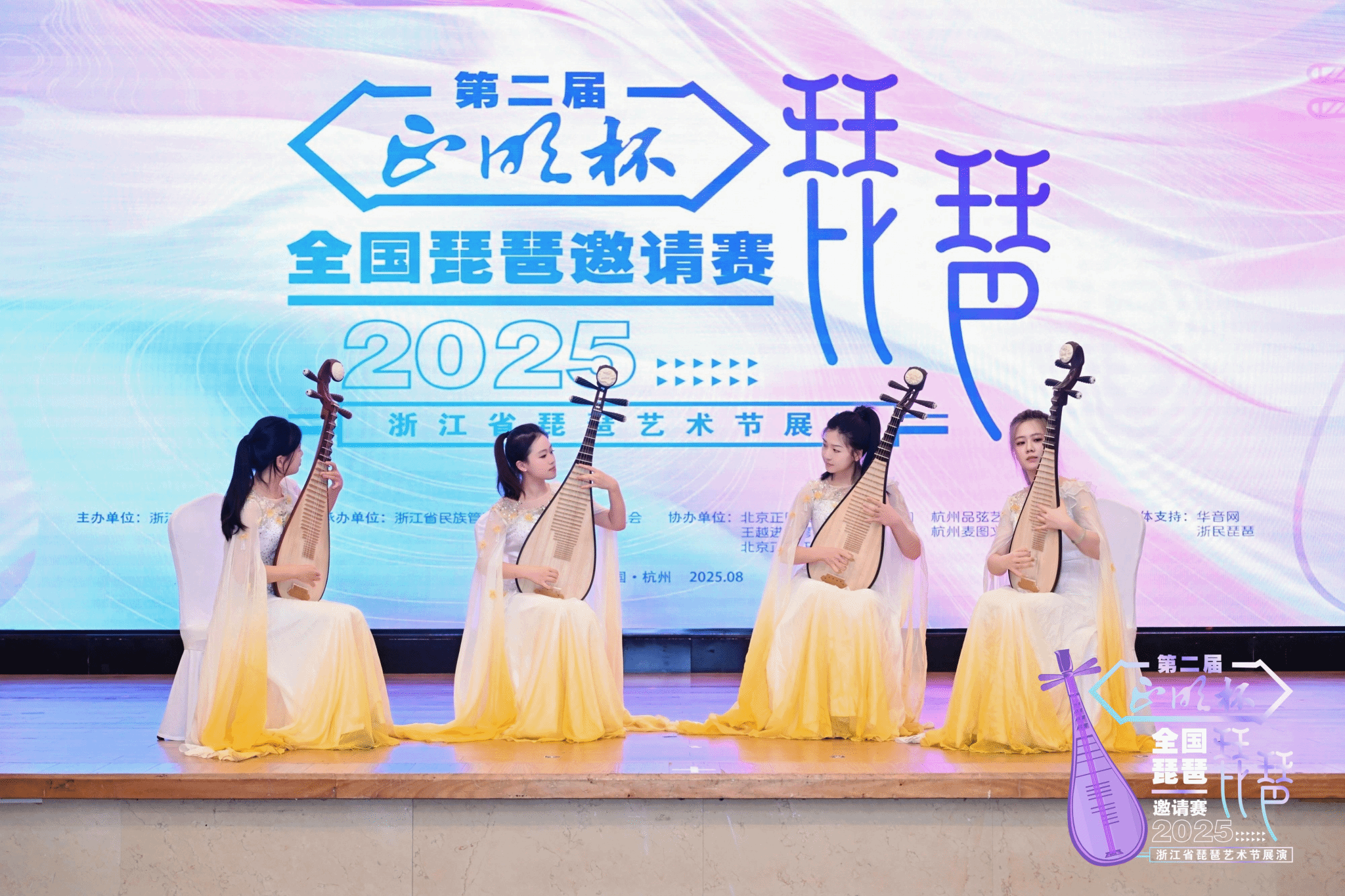 琵琶室内乐团(成员:周新、陈妍霏、林祎盈、陈思恒)凭借精湛的演绎与默契的配合所演奏作品《山歌好比春江水》,一举摘得重奏专业组金奖;该组合还先后荣获今年暑期在东京举行的东京国际艺术节重奏专业组银奖及上海康桥杯琵琶邀请赛重奏专业组银奖,体现出稳定的团体实力与高水平的艺术素养。