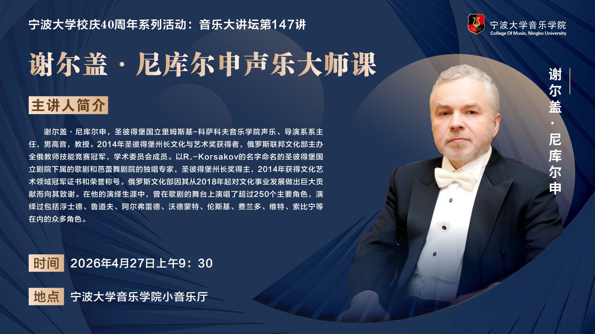 音乐大讲坛第147讲:谢尔盖·尼库尔申声乐大师课
