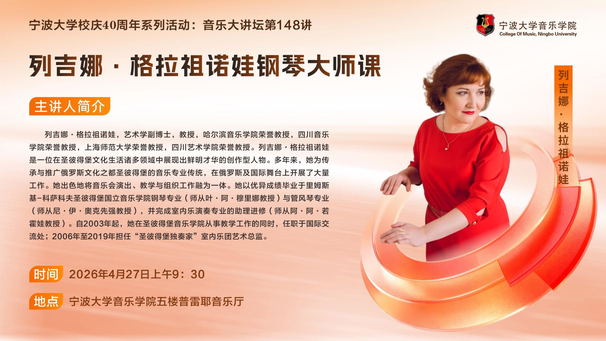 音乐大讲坛第148讲:列吉娜·格拉祖诺娃钢琴大师课